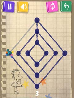 Doodle Connect is the perfect game to pass the time. Attractive graphics in the popular doodle style, a simple concept and tricky puzzles await you! Tricky puzzles? How hard can it be to connect a couple of dots with a continuous line? But once you’ve tried, and failed, to draw the infamous “Santa’s House” a couple of times, you’ll know that the answer is: pretty hard. Starting with simple shapes, the aim is to complete almost fifty levels of increasingly complex pictures – your head will soon start to spin.