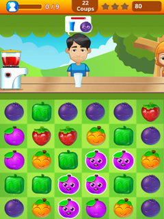 Fruit Splash Saga manages to give the classic match-3 gameplay a whole new spin. As in other games of this genre you combine at least three fruits of the same type to make them vanish and prepare a a fruity smoothie for your customers. The more fruits you manage to combine in one move, the higher your scores get and the faster you can serve your customers requests.But unlike any other game your objectives change as you play and every time you play one of the thirty levels, you will get a different experience. Enjoy this fresh idea and play Fruit Splash Saga now for free!